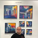 “Skyland”, mixed media on diptych 2x(60×20)” canvas, was selected by Jessie Boyland, the juror of the Art League’s July 2022 Open Exhibit. Skyland is a dream about true harmony between manmade and nature. This diptych explores the shapes and colors of landscape and sky from different angles and perspectives.